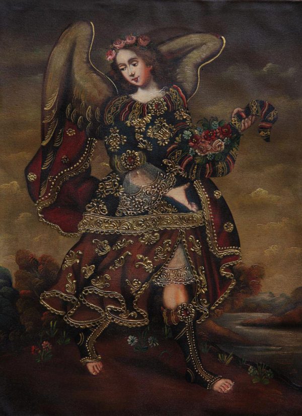 Un clásico de la escuela Cusqueña, es representado en pinturas con brocateado de Alto Relieve.
