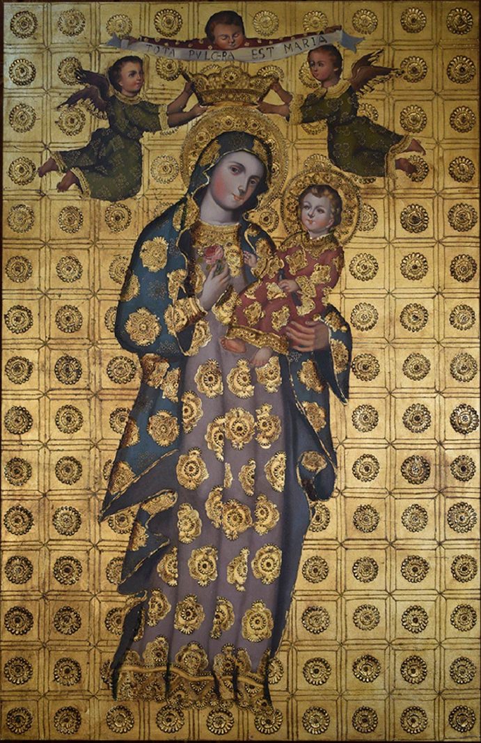 La virgen de la puerta , es una representación de la virgen Maria adaptada a la escuela cusqueña andina, este lienzo cusqueño es una gran muestra de la creación expuesta en años de colonia.