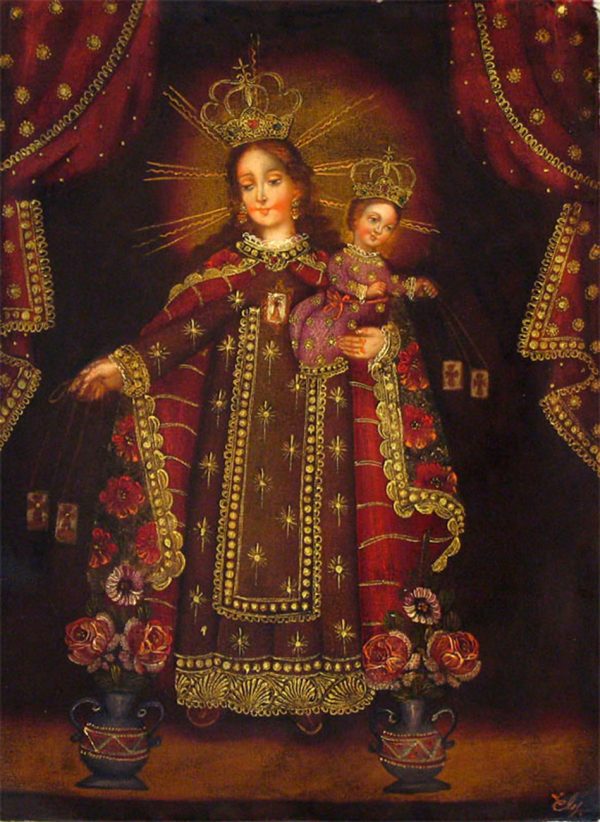 La virgen mamacha del carmen, es la patrona de Cusco, tiene diferentes representaciones en la escuela cusqueña.